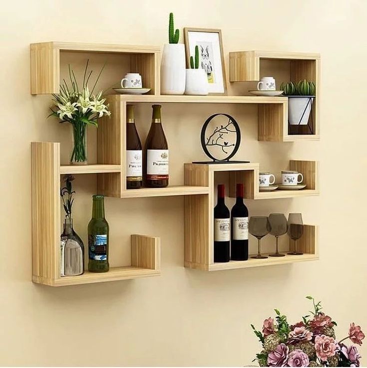 A minimalist wall shelf with a geometric design can give a room a modern and unique look. For example, a minimalist wall shelf with a triangular or rectangular shape can give your room an attractive appearance.