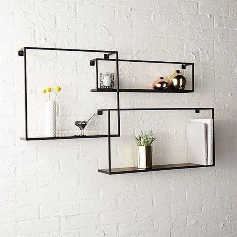 3.Minimalist wall shelves made of metal or stainless steel