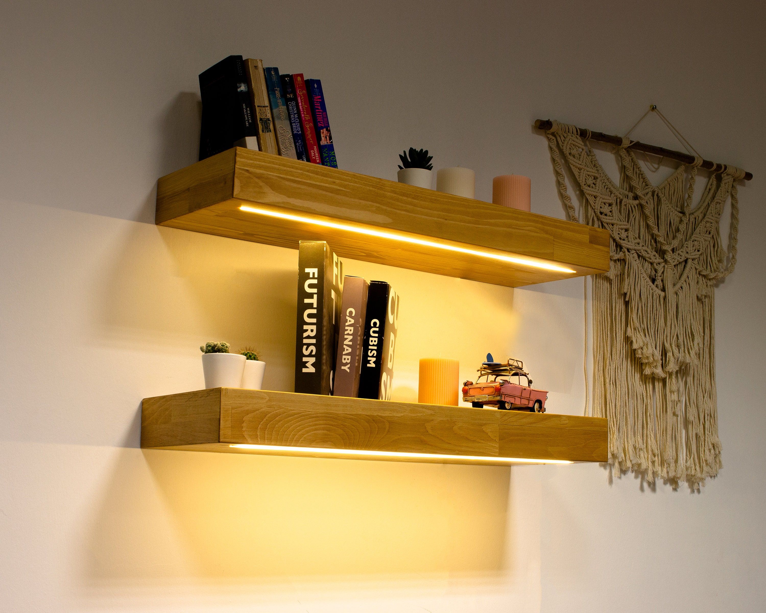 9.Minimalist Wall Shelf with LED Lighting