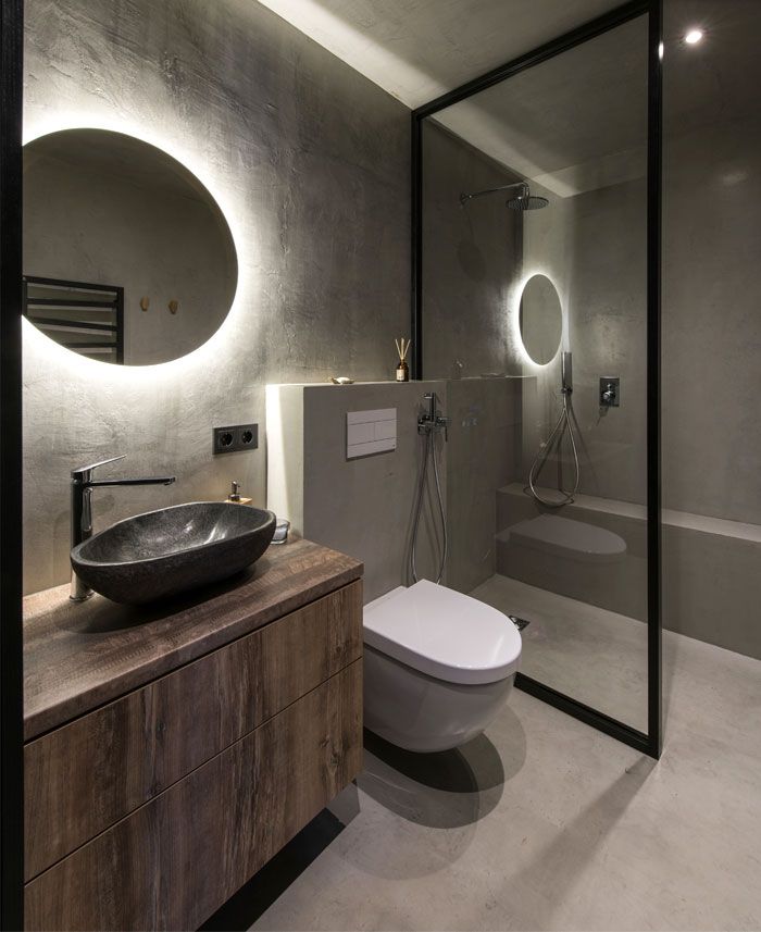 Industrial style is becoming a trend in interior design, including for bathrooms. You can use materials such as concrete or rough wood to give your bathroom a more rustic feel. Additionally, you can add accents such as an iron pipe chandelier or a rustic cabinet design to give your industrial bathroom a bolder feel.