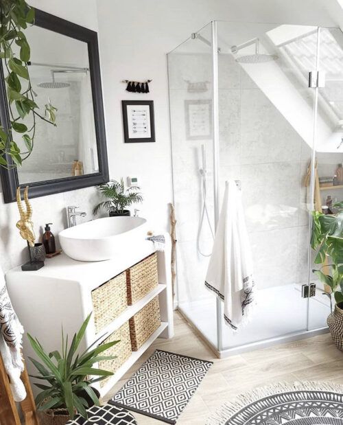 The bohemian style gives a free and unique impression to the bathroom. You can use bright colors like red or yellow with accents like tapestry or dried flowers to give your bathroom a more boho feel. In addition, you can add ornamental plants or woven mats to give a more natural impression and enrich the atmosphere in the bathroom.